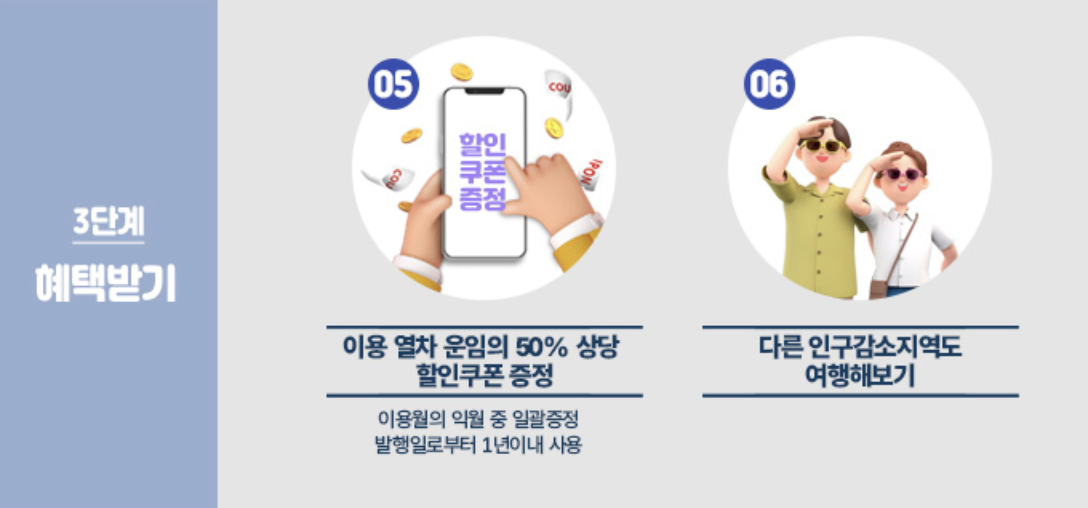 🔹 운임 할인: 열차 이용 시 50% 할인 쿠폰 지급