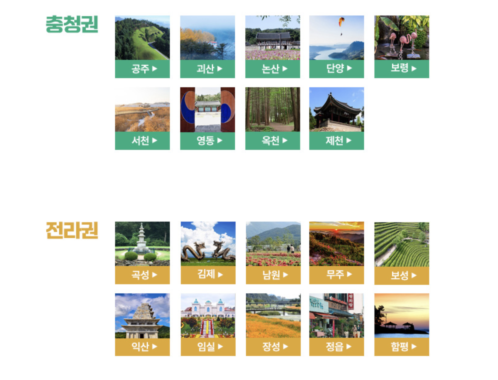 대표 코스: 논산 딸기체험, 전북 정읍 한우체험, 강원도 감자캐기 체험