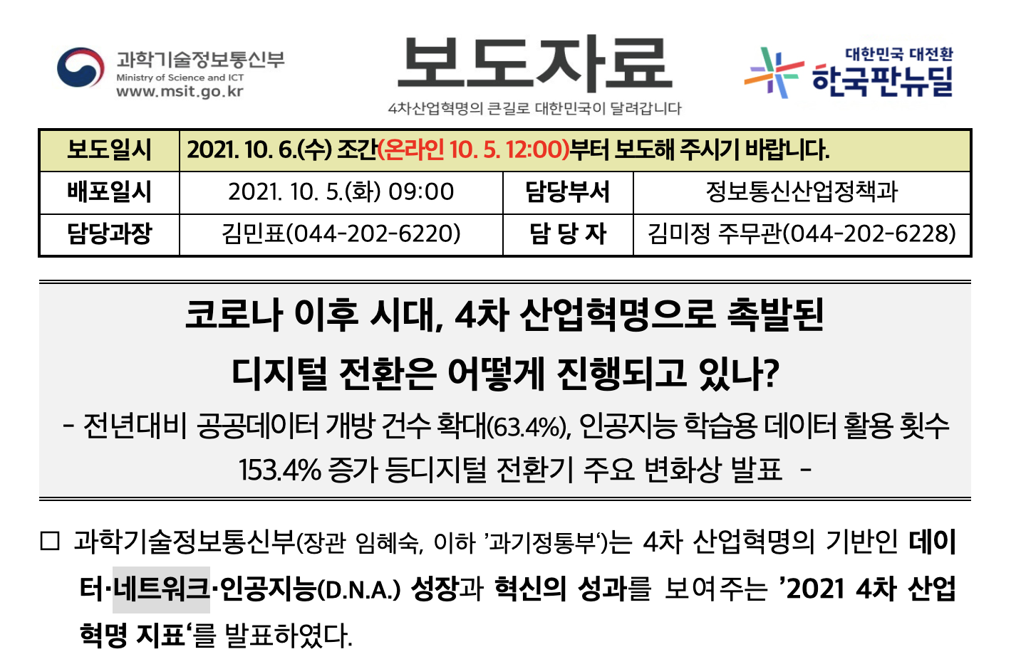 과학기술정보통신부 4차 산업혁명 지표 및 정책