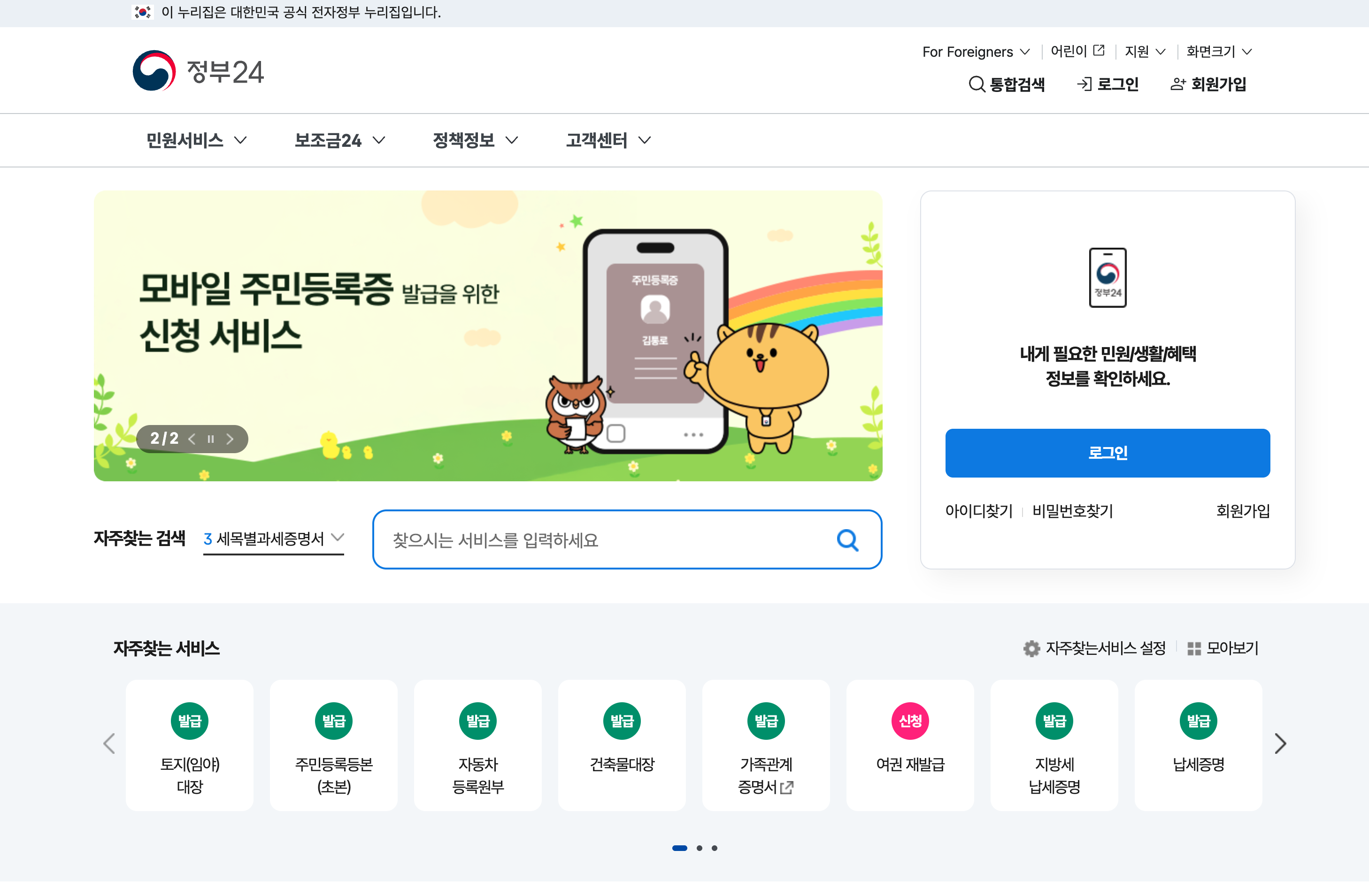 • 오프라인: 주소지 주민센터 방문 후 확인