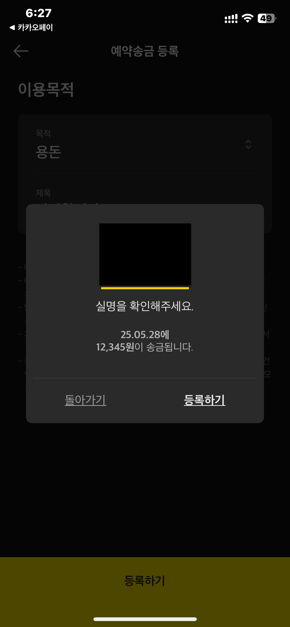 - 등록 전 마지막으로 송금 날짜와 금액 확인