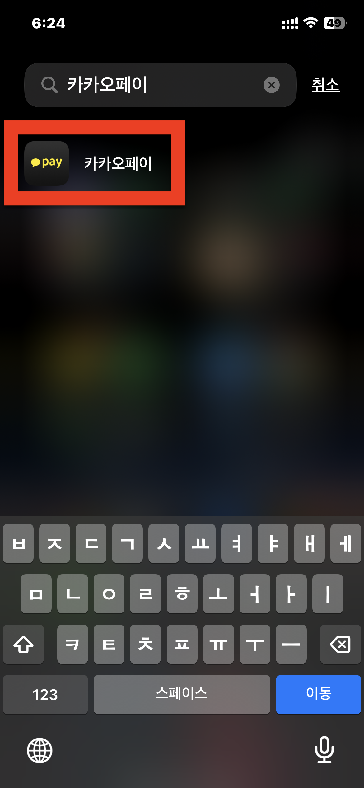 - 스마트폰에서 ‘카카오페이’ 앱을 검색 후 실행합니다.